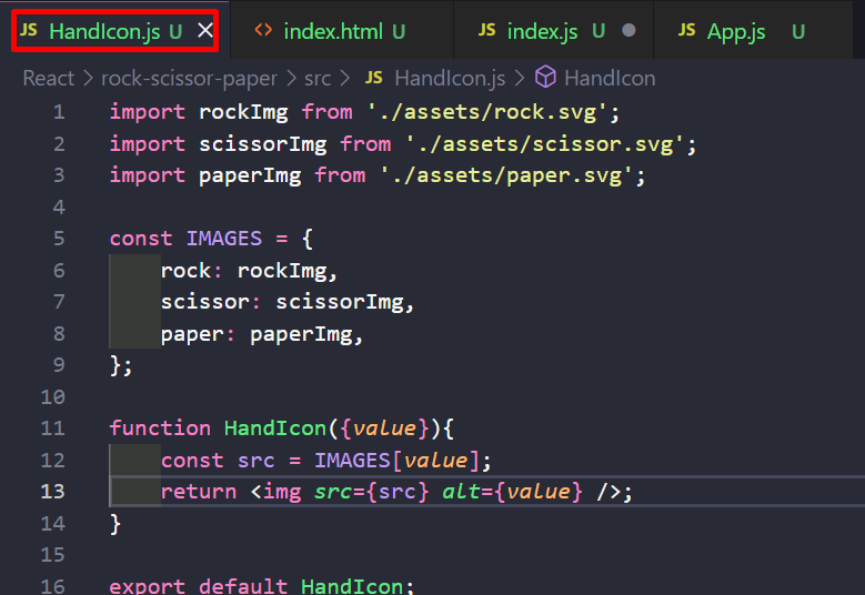 그래서 HandIcon 함수의 파라미터로 지금 value를 받고 있음.